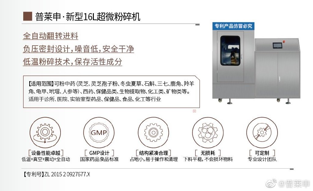 1、低溫 普萊申采用低溫冷凍的粉碎方式,使得中藥粉碎過(guò)成減少粉塵