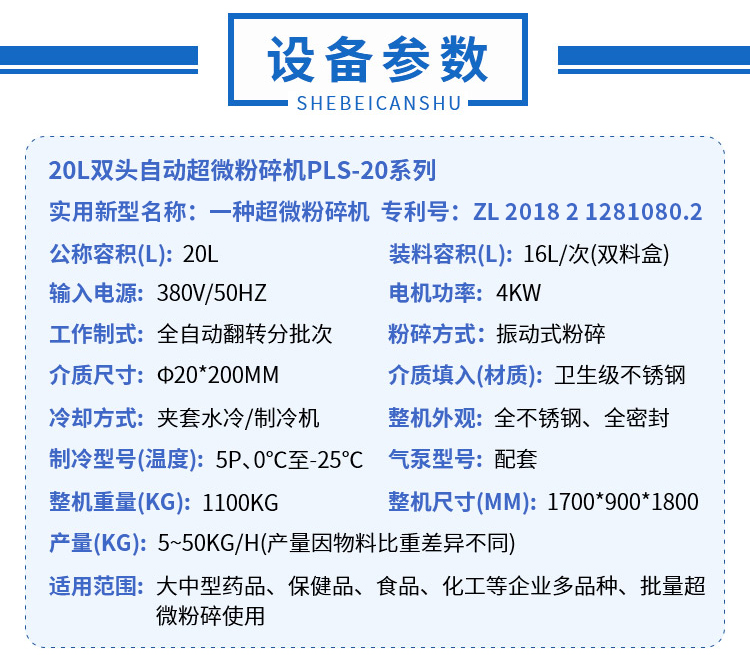 新型PLS-20L雙頭全自動(dòng)超微粉碎機